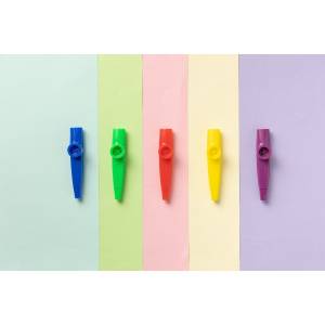 Kazoo in PVC colorato, adatto per il gioco e per il primo approccio alla musica dei bambini a scopo didattico.