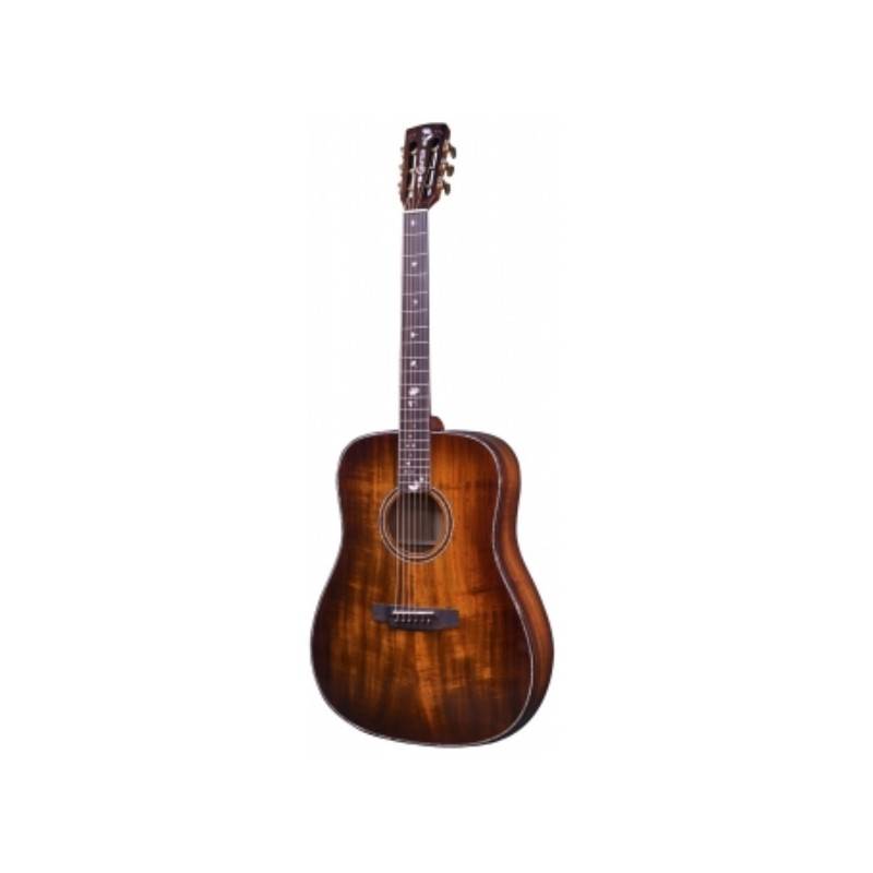 Chitarra Mind serie 2500 con Top/Fondo/Fase in KOA Massello, Manico in mogano, Tastiera in Palissandro, Segnatasti in madreperla con motivo floreale, meccaniche Grover Open Gear, tinta natural con finitura lucida.