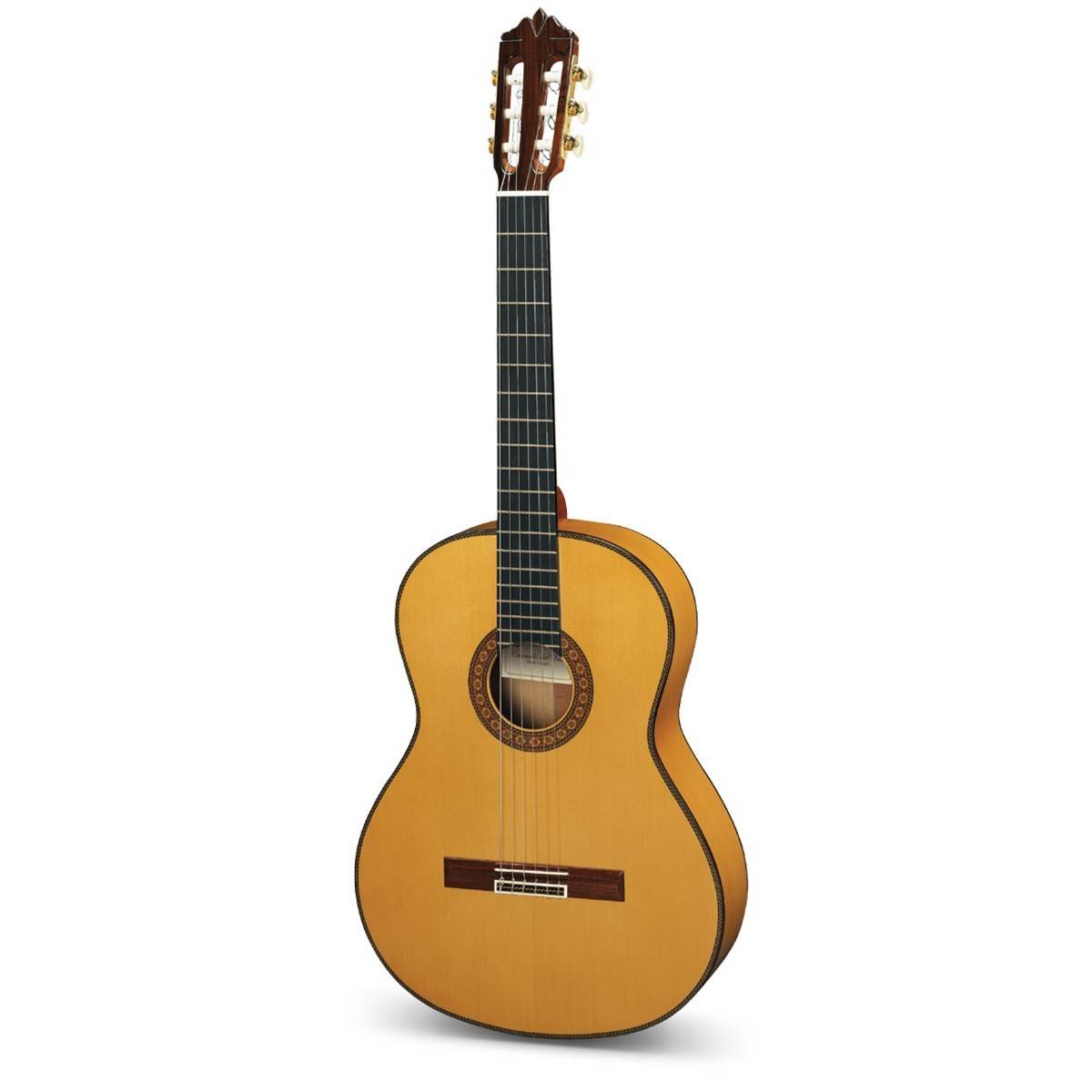 Tavola armonica: in abete massello Tedesco con battipenna flamenco Fasce e fondo: in cipresso spagnolo massello Manico: cedro spagnolo Tastiera: ebano Meccaniche: dorate Lunghezza della scala: 650 mm Larghezza al capotasto: 52 mm Spessore lobo superiore: 87 mm Spessore lobo inferiore: 94 mm Spessore del manico al 1° tasto: 22 mm Spessore del manico al 12° tasto: 25 mm Astuccio incluso