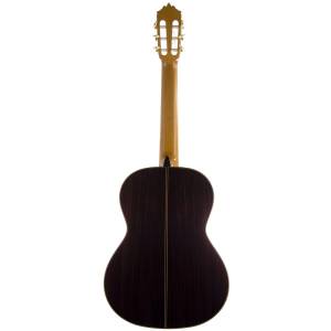Tavola armonica: cedro rosso massello Fasce e fondo: in palissandro Indiano massello Manico: cedro spagnolo con rinforzo in ebano Tastiera: ebano Meccaniche: artigianali, placcate oro Lunghezza della scala: 650 mm Larghezza al capotasto: 52 mm Spessore lobo superiore: 100 mm Spessore lobo inferiore: 107 mm Spessore del manico al 1° tasto: 22 mm Spessore del manico al 12° tasto: 25 mm Astuccio incluso