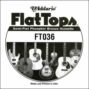 Corda singola D'Addario FT036 Semi-Flat in bronzo fosforoso per chitarra acustica, .036