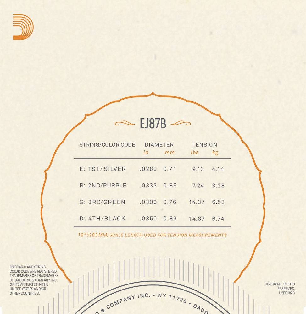Corde D’Addario EJ87B in titanio per ukulele baritono