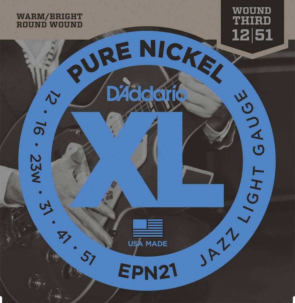 Corde D’Addario EPN21 in nichel puro per chitarra elettrica, Jazz Light, 12-52