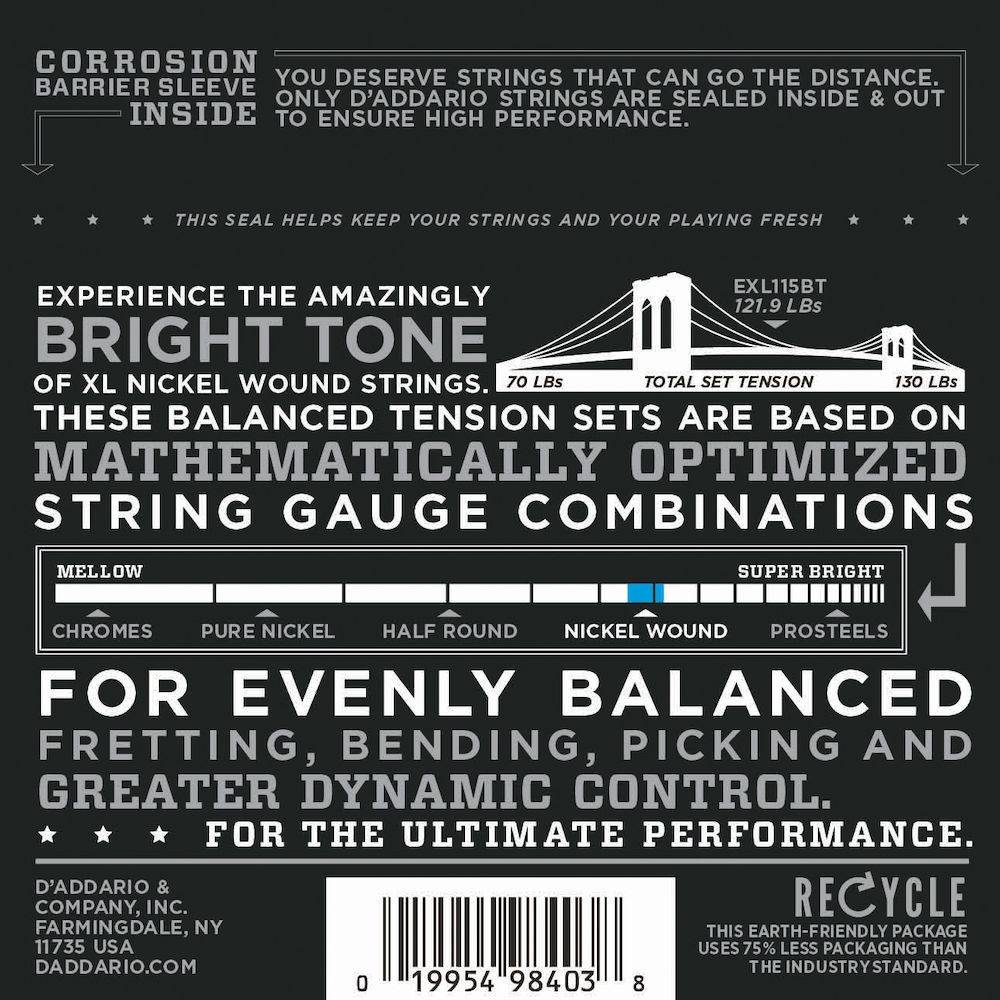 Corde D’Addario EXL115BT per chitarra elettrica, Nickel Wound, Balanced Tension Medium, 11-50