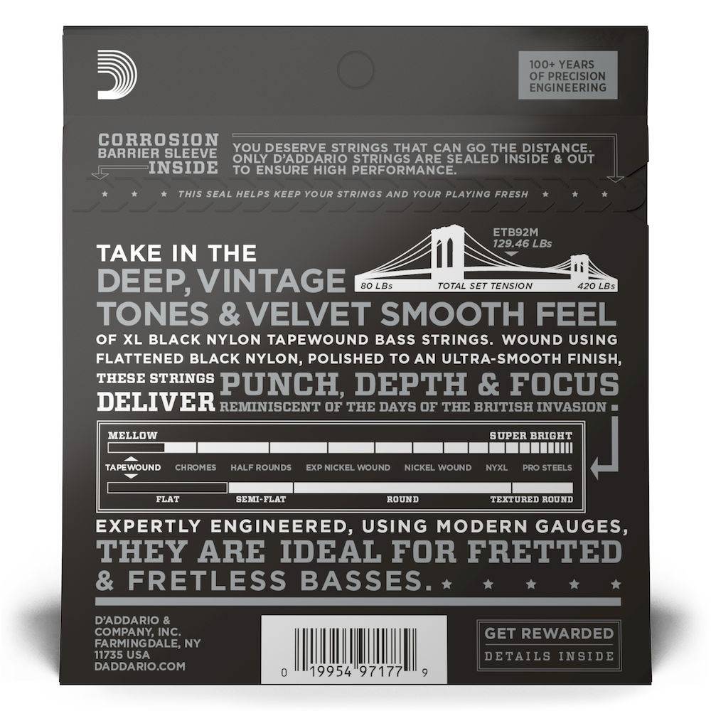 Corde D’Addario ETB92M Tapewound per basso, Medium, 50-105, Medium Scale