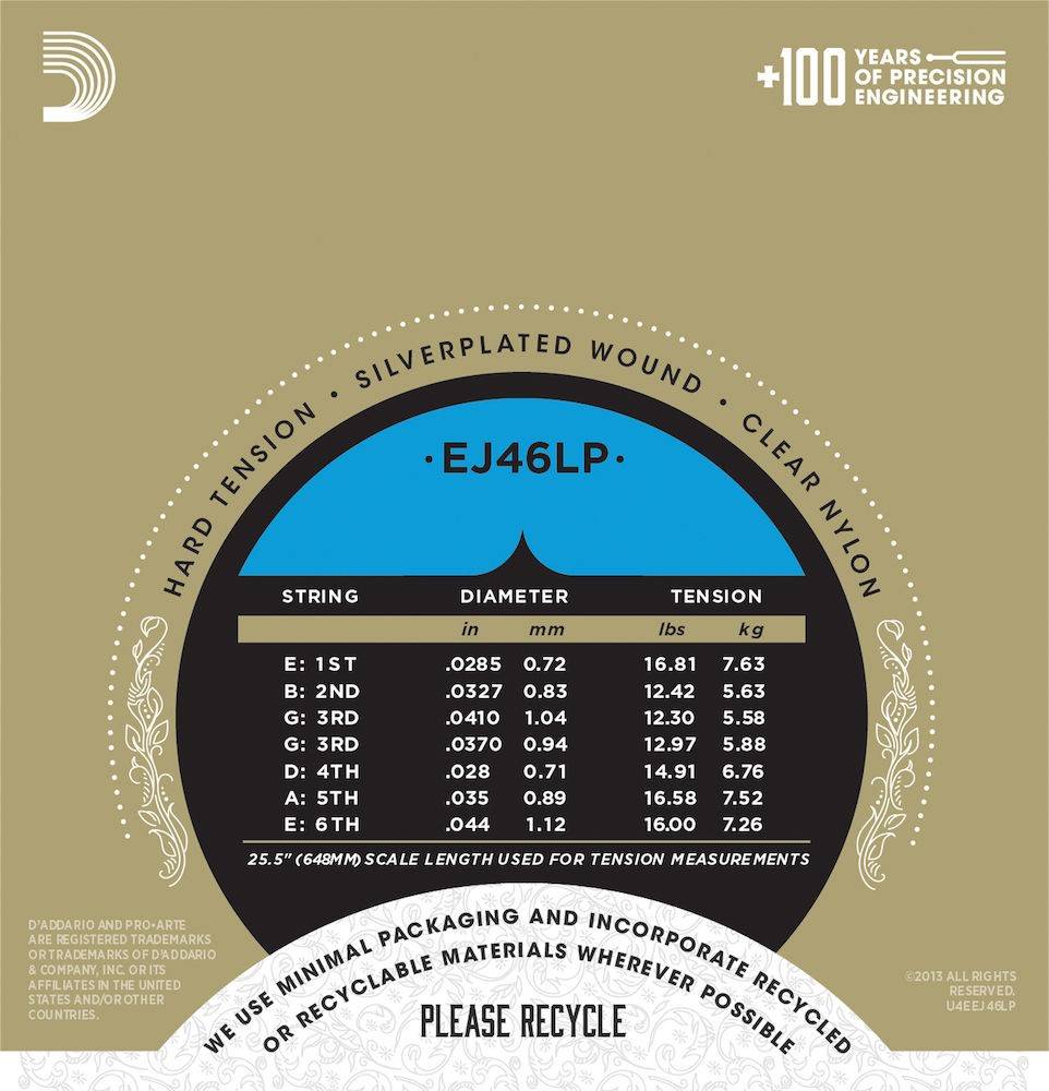 EJ46LP "lightly polished," hard tension classical strings are a popular choice for their rich tone, increased resistance and strong projection.
