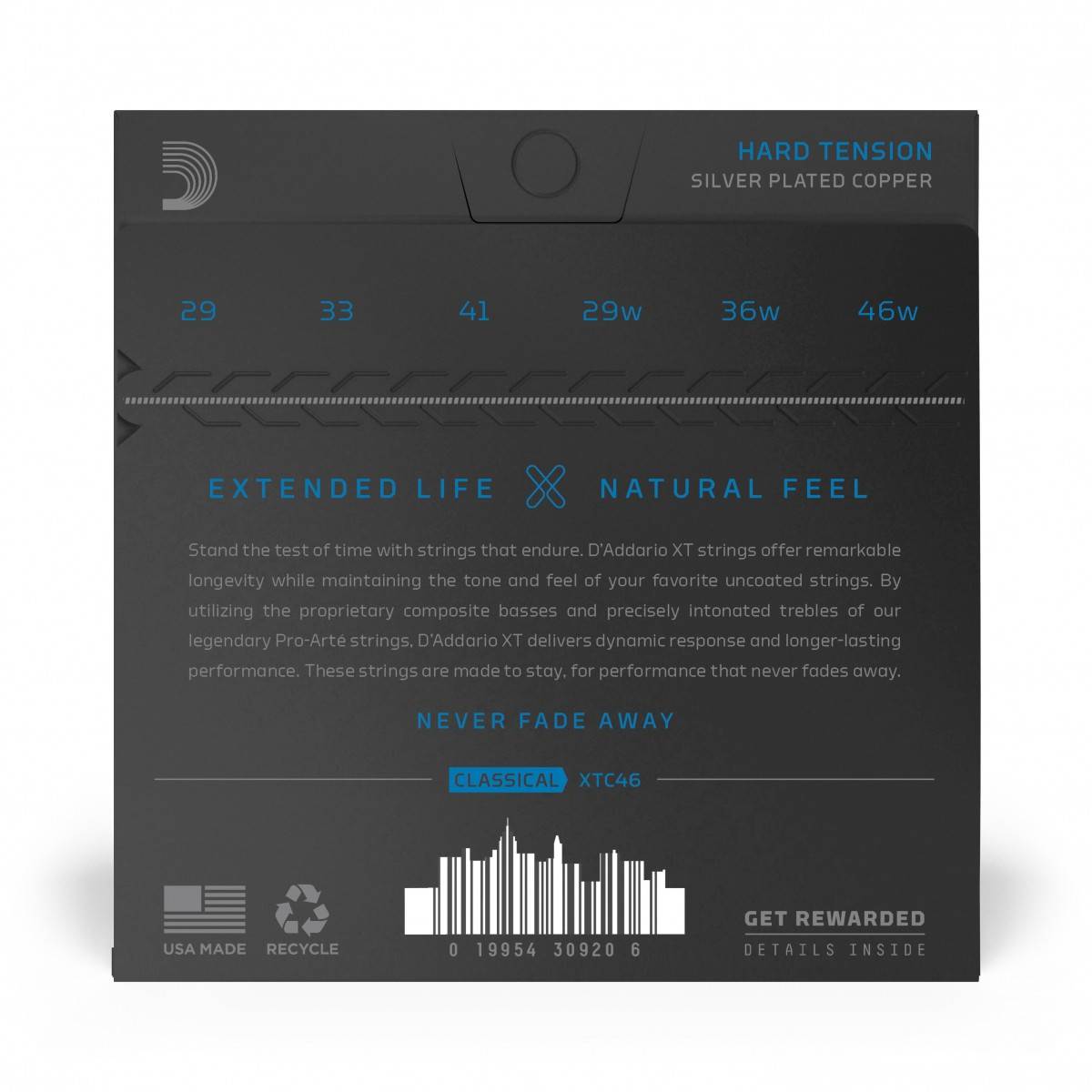 D'Addario XTC46, XT - Corde in rame placcate argento per chitarra classica, tensione dura