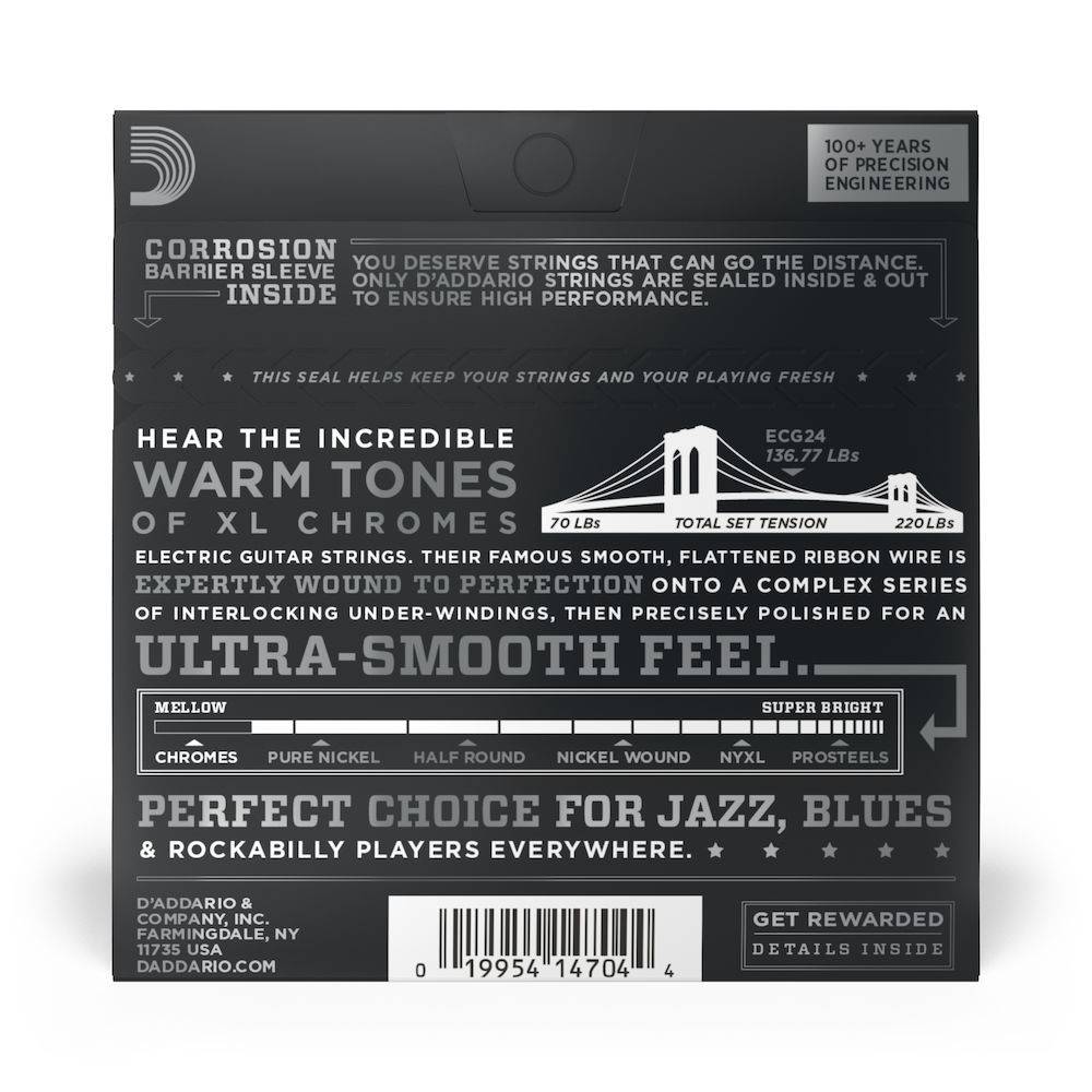 Corde D'Addario ECG24 Chromes per chitarra elettrica, Flat Wound, Jazz Light, 11-50