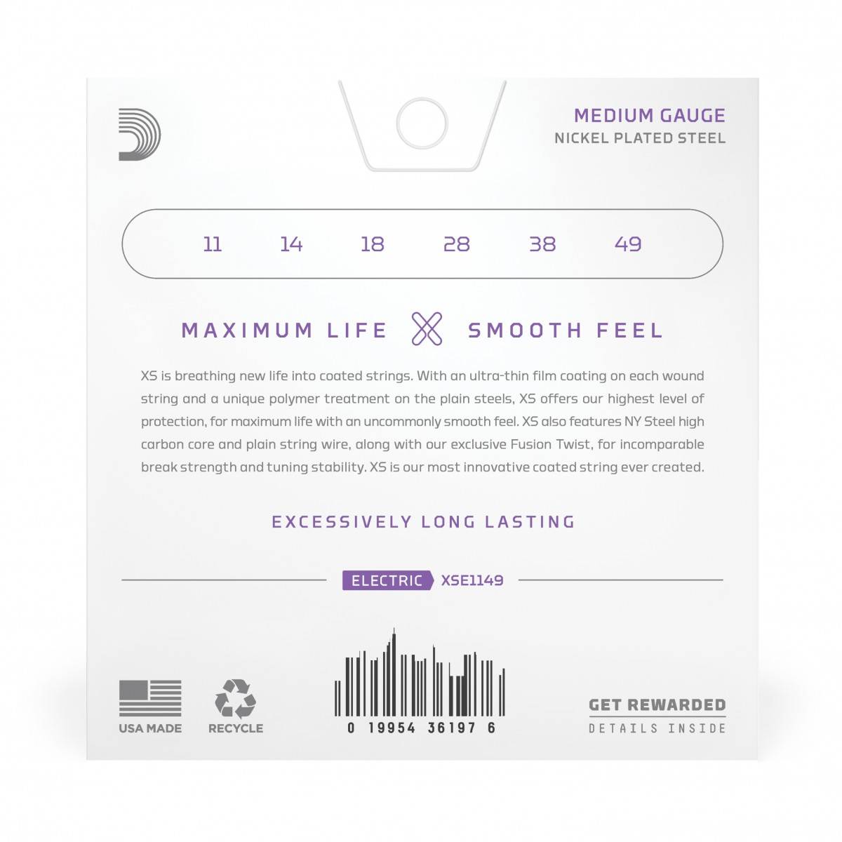 Le corde rivestite XS per chitarra elettrica sono le più durevoli dell’intera gamma di corde D’Addario. Rivestite con il nostro speciale trattamento XS, queste esclusive corde combinano la massima durata a sensazioni tattili morbide e veloci, pur mantenendo un timbro straordinario. Distinte da un’anima in acciaio NY, da un nuovo avvolgimento placcato in nickel e dalla tecnologia Fusion Twist, le corde XS Nickel offrono una resistenza e una stabilità di accordatura superiori, e si caratterizzano per armonici ricchi, grande chiarezza e una definizione eccezionale con qualsiasi tecnica di sweep, bending o slide. Le corde con scalatura Medium 11-49 si contraddistinguono per un volume superiore e una tensione e una resistenza maggiorati.