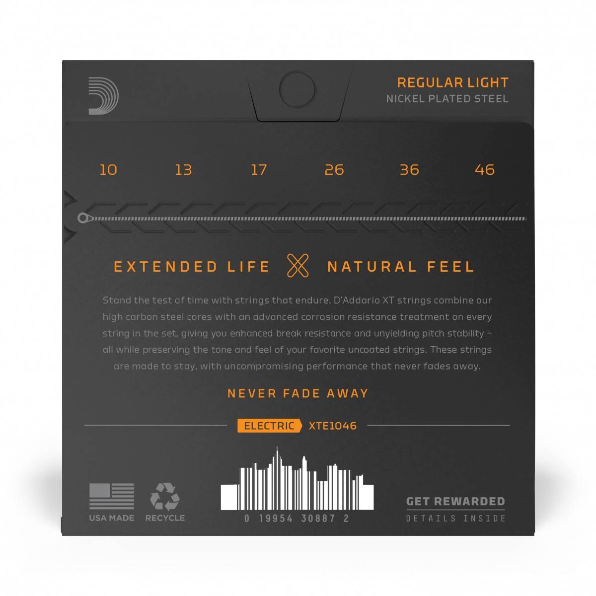 D'Addario XTE1046, XT - Corde in acciaio placcate al nickel per chitarra elettrica, scalatura leggera normale, 10-46