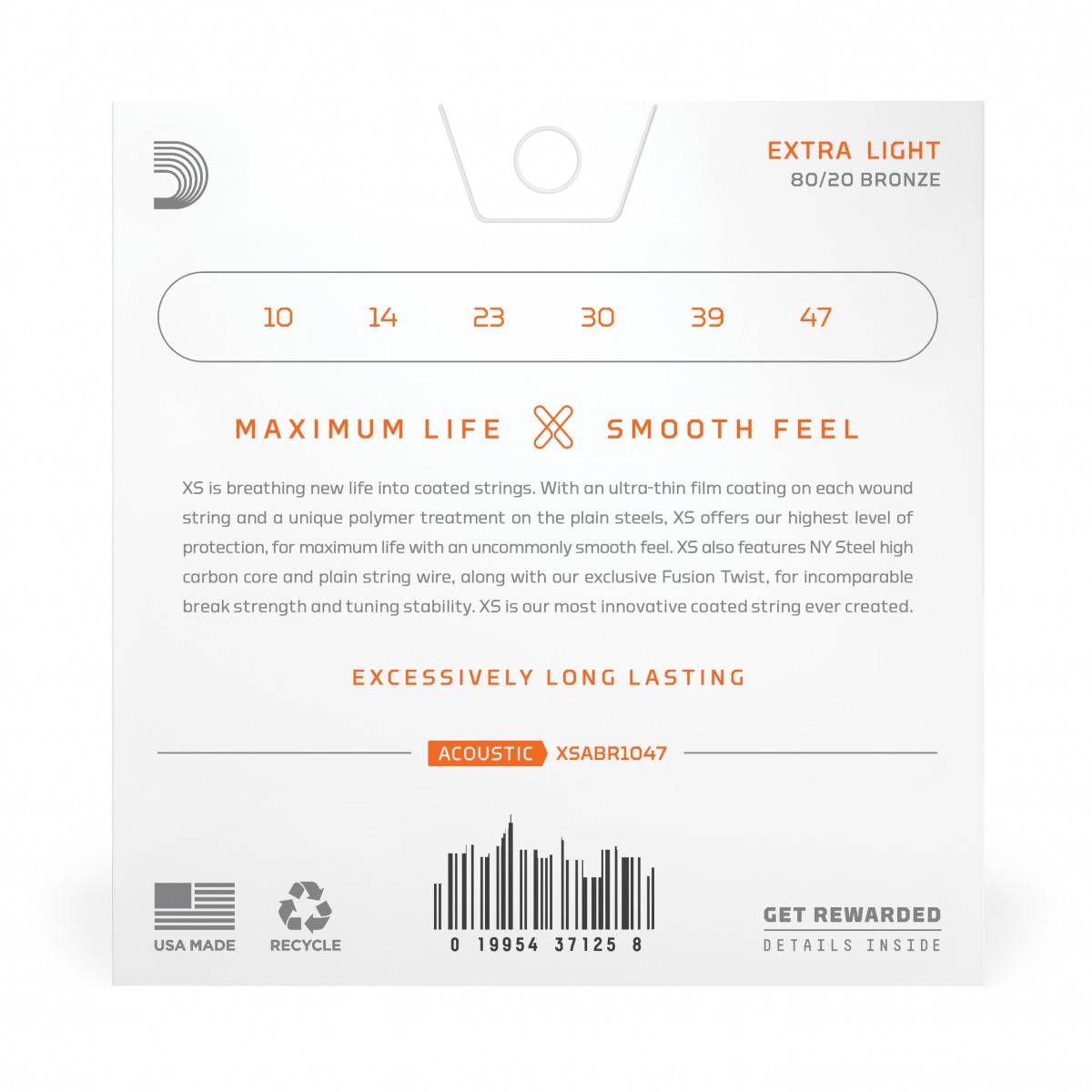 Corde rivestite XS 80/20 Bronze per chitarra acustica, scalatura Extra Light 10-47