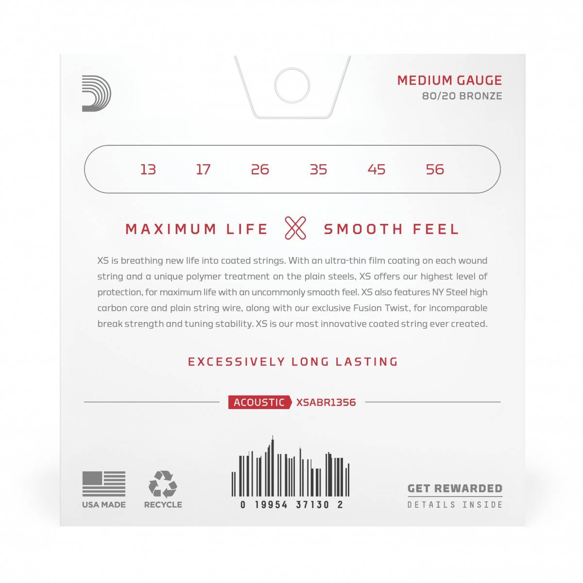 Corde rivestite XS 80/20 Bronze per chitarra acustica, scalatura Medium 13-56