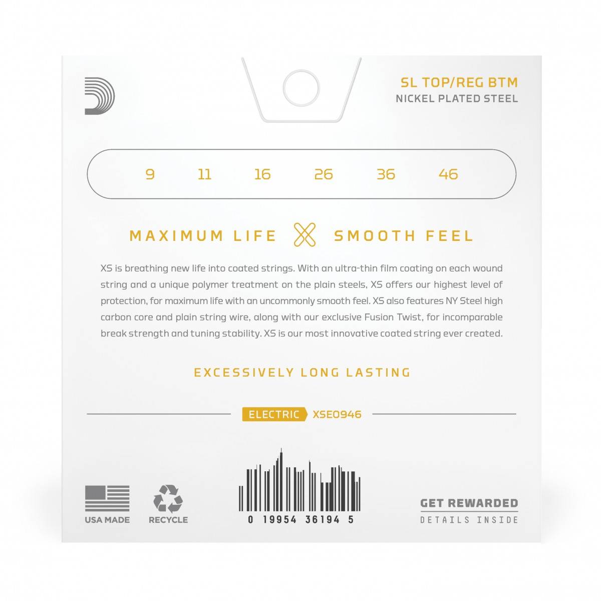 Corde rivestite XS Nickel per chitarra elettrica, scalatura Super Light Top/Reg Btm 09-46