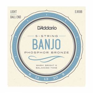 D'Addario EJ69 5-String Ball-End Banjo Strings, Phosphor Bronze, Light, 9-20