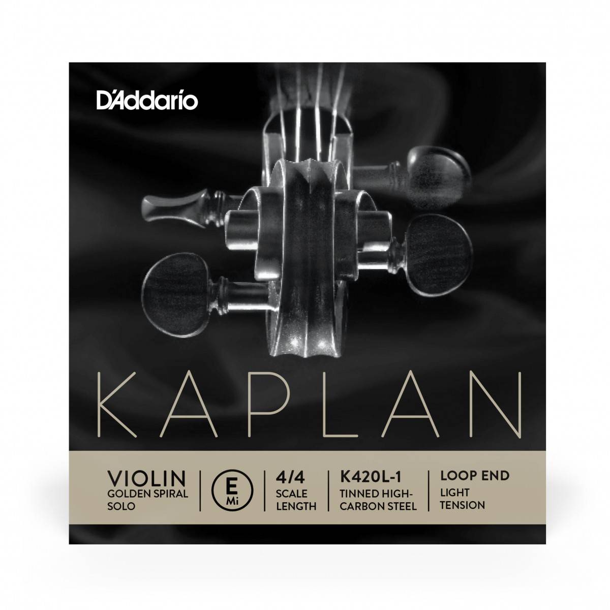 D'Addario Kaplan Golden Spiral Solo Violin - Singola corda Mi per violino, scala 4/4, tensione leggera, con terminale a cappio