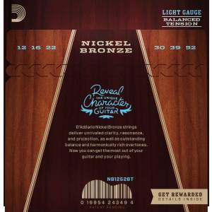 D'Addario NB1252BT - Corde in nickel-bronzo per chitarra acustica, scalatura leggera, tensione bilanciata, 12-52
