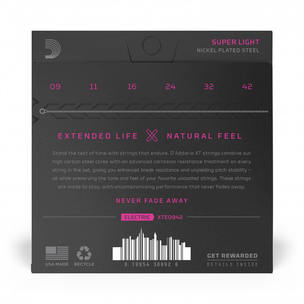 D'Addario XTE0942, XT - Corde in acciaio placcate al nickel per chitarra elettrica, scalatura super leggera, 09-42