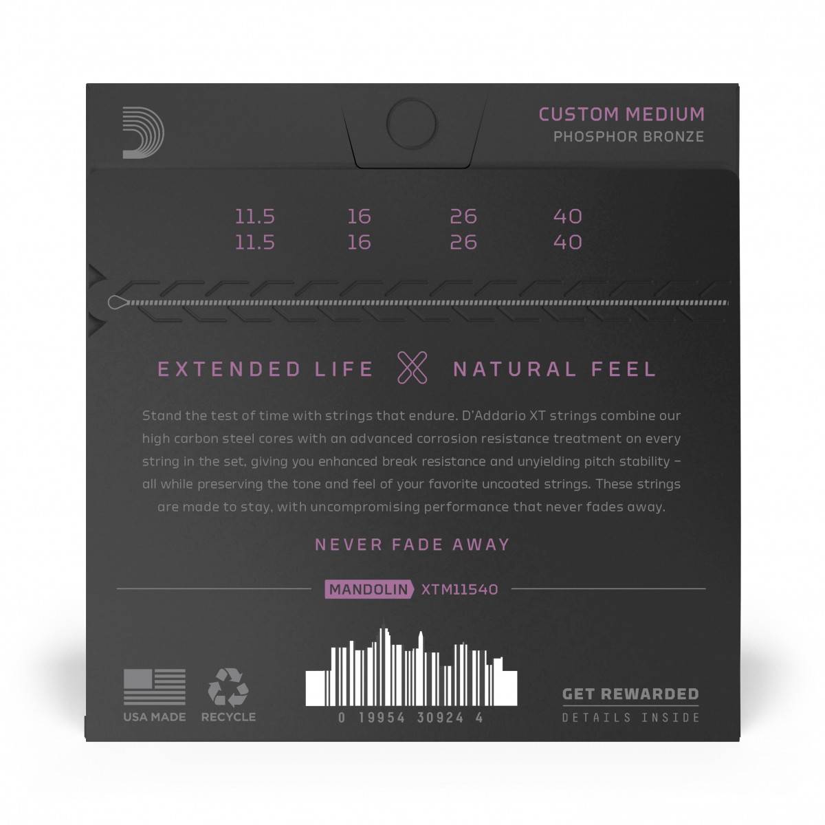 D'Addario XTM11540, XT - Corde in fosforo-bronzo per mandolino, scalatura media custom, 11,5-40