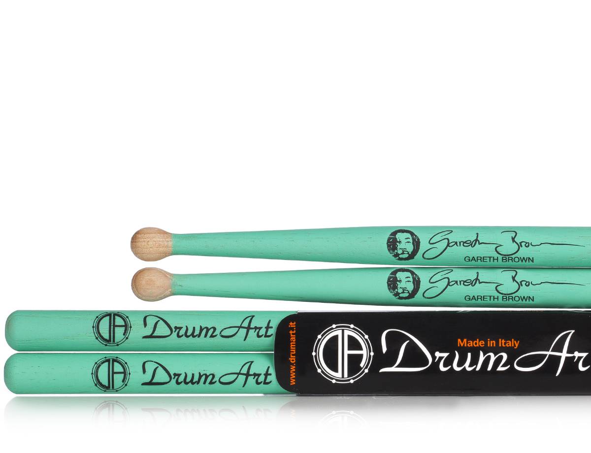 Questa bacchetta è stata realizzata su misura per Gareth Brown. Noi della Drum Art abbiamo seguito le precise indicazioni dell’artista a partire dal modello, fino alla stampa. Le bacchette Gareth Brown sono trattate con una vernice effetto gommato.