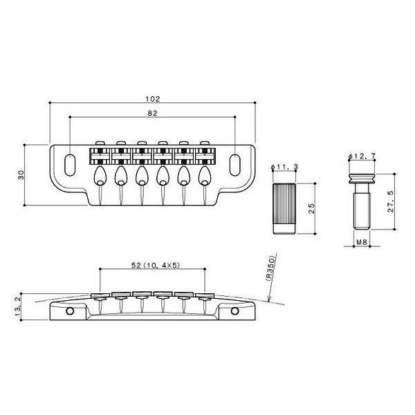 Ponte attaccaorde Gotoh per chitarra completo di 2 pivot regolabili in altezza. Sellette in hard zinc