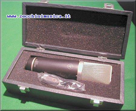 A condendatore con preamplificatore a FET in Classe A. Risposta polare selezionabile cardioide, omnidirezionale e a figura di 8.