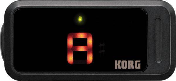 Accordatore cromatico dotato di sistema clip-on, display in LED rossi, reverse-display, alimentato a batterie CR2032.
