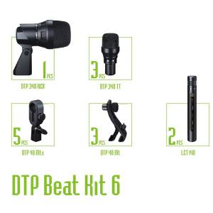 Kit da 6 microfoni composto da un DTP 340 REX, tre DTP 340 TT, due LCT 140 Set di accessori a corredo include due antivento LCT 40 Ws, cinque supporti antishock DTP 40 Mts e tre supporti DTP 40 Mt Valigetta nera in alluminio con doppia imbottitura e rivestimento in sky per un trasporto comodo e sicuro Microfoni con risposta in frenquenza progettata pel la ripresa di batterie e percussioni Concepito per garantire una sicura durata nel tempo indifferentemente se usato in situazioni live o studio LCT 140 possiede un circuito di amplificazione trasformerless in grado di proteggere lutput da qualsiasi interferenza elettromagnetica Connettori XRL gold-plated a 3 piedini per garantire il pieno e costante passaggio del segnale