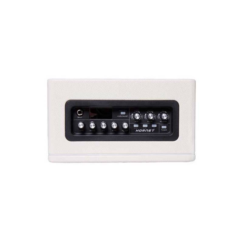 Il Mooer Hornet 15 White un compatto combo amplificatore ideale per chitarra elettrica, chitarra acustica e basso. Con una potenza di 15W RMS, dotato di un altoparlante custom da 6,5'' e 9 effetti digitali di alta qualit, tra cui modulazione, delay e riverbero, tutti selezionabili dal pannello frontale. Offre memorizzazione e accesso a 9 preset, un accordatore incorporato e due modalit di funzionamento: Live e Preset. Inoltre, include connettivit Bluetooth, ingresso per strumento da 1/4'', ingresso AUX da 1/8'', uscita per cuffie e controlli di volume, gain, treble, mid e bass. Il suo design classico e la finitura bianca lo rendono perfetto per qualsiasi spazio. Peso: 2,9 kg