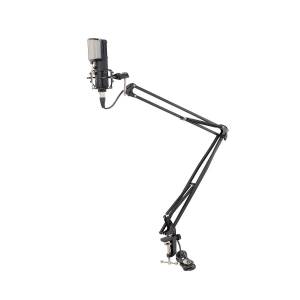 Montaggio a tavolo Per radio, podcast e home-recording Attacco per pinza microfonica da 5/8" Ruotabile a 360 gradi Lunghezza Approssimativa Asta: 1150mm Lunghezza approssimativa del Braccio Snodabile: 1000mm Colore: Nero Staffa per fissaggio per tavole con spessore massimo di 53mm Cavo: Cavo Bilanciato da 4m con connettori XLR 3-Poli maschio/Femmina Carico Approx.: 1.5 kg