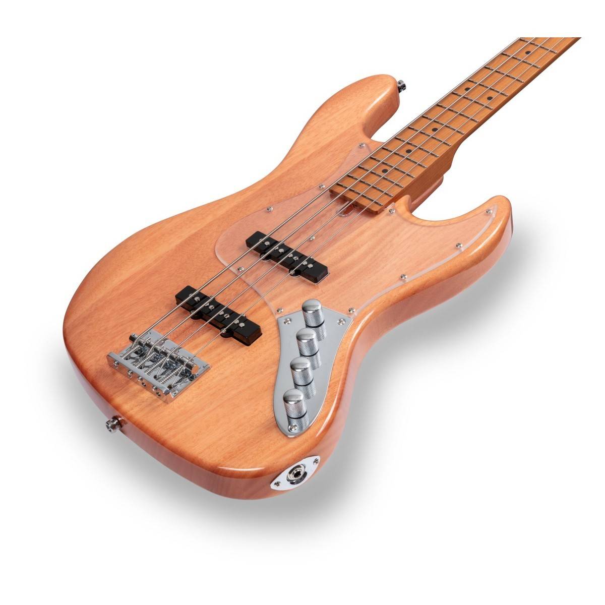 Corpo: okoume Manico: roasted maple Tastiera: roasted maple Tasti: 20 Meccaniche: chrome Ponte: SD vintage Pick up: 2 J-style Deluxe Potenziometri: 4 (2 volume + 2 tono) Colore: transparent natural Versione 4 corde