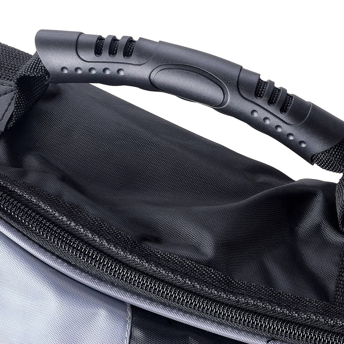Tracolle regolabili Maniglia ergonomica Ampia tasca frontale Colore: nero e grigio Logo ricamato a colori Adatta per ukulele/mandolino piatto Imbottitura: 10mm Poly 420D antistrappo