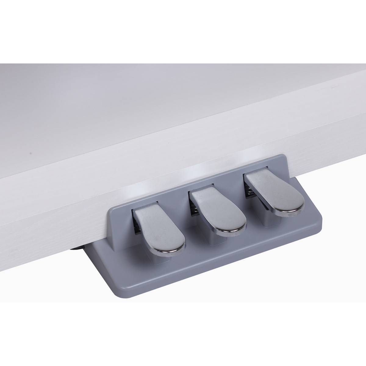 Il pianoforte digitale KYRIOS-WH è un'ottima scelta nella categoria "entry-level". Questo pianoforte digitale è equipaggiato con una selezione di suoni di alta qualità, una tastiera di tipo "Hammer Action" completamente ponderata, un'unità a 3 pedali realistica, altoparlanti potenti e cabinet di dimensioni standard. La tastiera è realizzata con zone di peso graduate così da avere una forte resistenza sul lato dei bassi e leggera sul lato degli acuti e quindi molto utile per esercitarsi. La funzionalità aggiunta di USB-Audio offre la comodità di poter registrare le tue prestazioni direttamente su uno smartphone o un computer senza bisogno di un'interfaccia aggiuntiva. La finitura in colore bianco aggiunge il tocco di eleganza al pianoforte digitale KYRIOS-WH rendendolo adatto a qualunque tipo di arredamento.