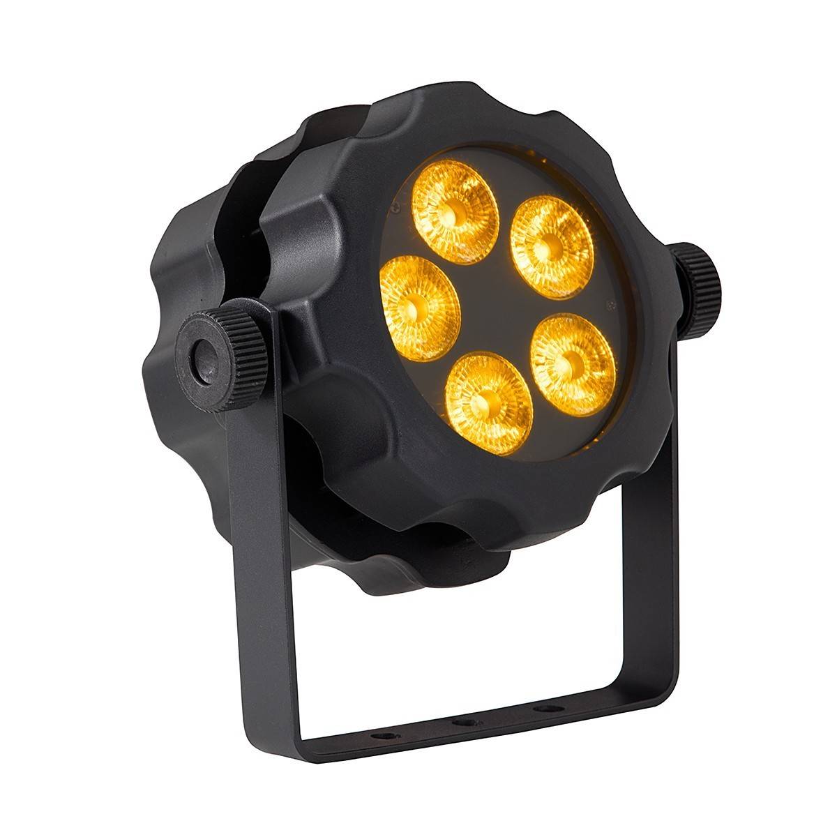 Pensato specificatamente per l⁵so esterno grazie al grado di protezione IP65, questo faro ha una profondità di soli 13 cm. Nonostante le sue dimensioni, ha una capacità di emissione luminosa massima di 7000 Lux e, grazie alla tecnologia LED 6in1 è in grado di offrire una tavolozza cromatica enorme. Il PAR-5-18W-IP65 può essere impiegato sia per applicazioni architetturali esterne, sia in contesti con elevata presenza di umidità. Il controllo DMX va da 2CH a 9CH. Le modalità di controllo sono Master-Slave, Sound, Jump, Fade e Auto. In dotazione vengono forniti n.1 cavo di rete 1m con spina Schuko e Connettore Femmina IP65 con diametro da 21mm; n.1 cavo DMX da 1m con XLR 3-P maschio e connettore femmina DMX IP65 con diametro da 17mm.