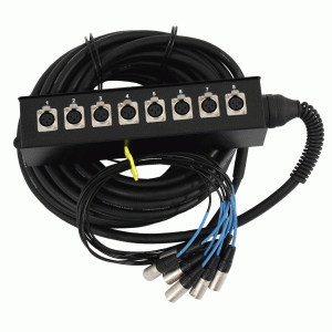 Input: 8 XLR 3 poli Masse indipendenti Connettori XLR di qualità Yongsheng by Neutrik® Box in metallo Lunghezza cavo multicore: 15 mt Cable mount connection protected with PVC jackets