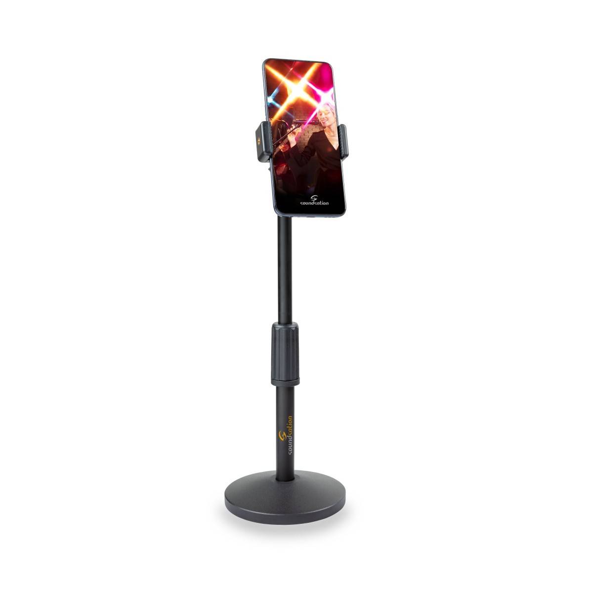 Adatto per lo live streaming e registrazione. Supporti intercambiabili per smartphone e microfono. Supporto per smartphone con snodo a sfera che permette una regolazione rapida e precisa. Struttura interamente in metallo con design telescopico a due sezioni. Base circolare in acciaio pressofuso per la massima stabilità.