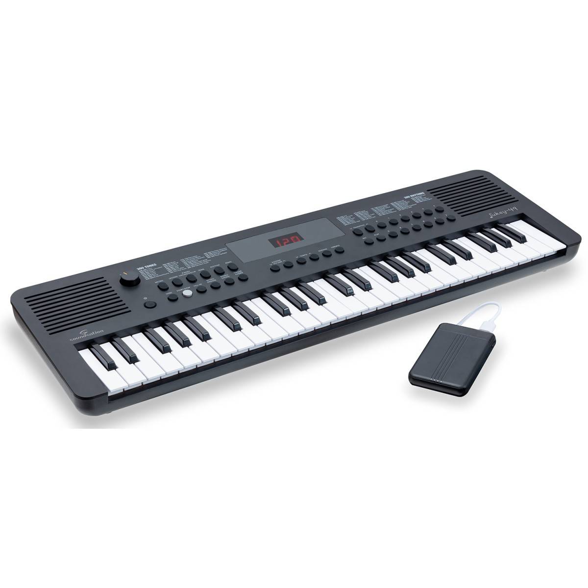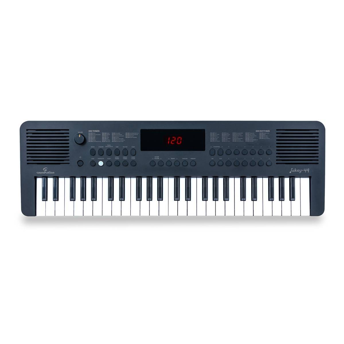 JUKEY-49 è una tastiera compatta con 49 tasti mini-size progettata appositamente per chi comincia a fare i primi passi nellpprendimento della musica divertendosi con questo strumento. La tastiera JUKEY-49 viene fornita con una vasta selezione di suoni, ritmi e contenuti musicali di buona qualità che permettono di suonare e divertirsi con innumerevoli generi musicali. JUKEY-49 offre la funzione di riconoscimento e cambio automatico degli accordi che rende facile l⁵tilizzo dellccompagnamento musicale anche se si è alle prime armi. Questa tastiera è equipaggiata con funzioni normalmente presenti in tastiere di taglio più grande come ad esempio REC e PLAY. Le funzioni, la versatilità, la compattezza, la possibilità di funzionamento a batteria o con il Power Bank in dotazione fanno di questa tastiera uno strumento orientato allpprendimento e ad un utilizzo scolastico.